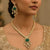 • This elegant jewelry set features a classic Polki necklace adorned with sparkling uncut stones arranged in a symmetrical pattern along a golden-toned chain.