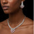 • This elegant silver-toned floral pink stone necklace set features a delicate and intricate design.