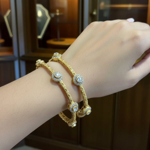 The Suvarna Aura American Diamond Bangles are a perfect blend of traditional richness and contemporary elegance.