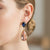 Set in a refined golden-toned bezel with delicate prong detailing, each earring features a smaller matching stone at the top, linked by a subtle crystal accent for added sparkle.