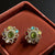 These opulent stud earrings showcase a traditional Navratna-inspired arrangement, featuring a central peach-toned cabochon encircled by a halo of sparkling white stones. Surrounding it are nine richly colored cabochon gemstones—deep blue, ruby red, soft pink, green, and violet—each set in intricate golden-toned frames. Delicate pink accent stones add a refined touch, enhancing the earrings’ royal and festive aesthetic. Perfect for weddings, cultural celebrations, and timeless heirloom-style looks, these earrings embody luxury, tradition, and vibrant elegance.