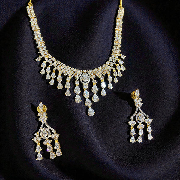 • The Aarohi Teardrop American Diamond Necklace Set is a graceful blend of classic elegance and modern brilliance.