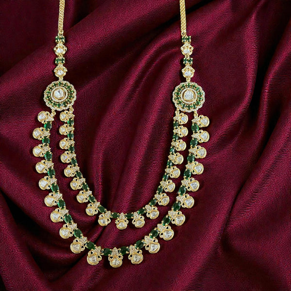 Each layer is detailed with dangling Polki clusters that create a rhythmic, luxurious drape.